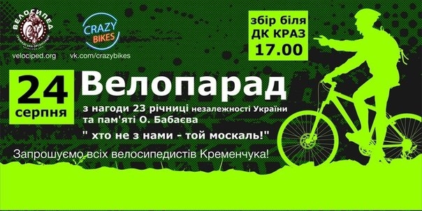 В Кременчуге пройдет велопробег, приуроченный к 23-й годовщине Дня независимости Украины и памяти Олега Бабаева.