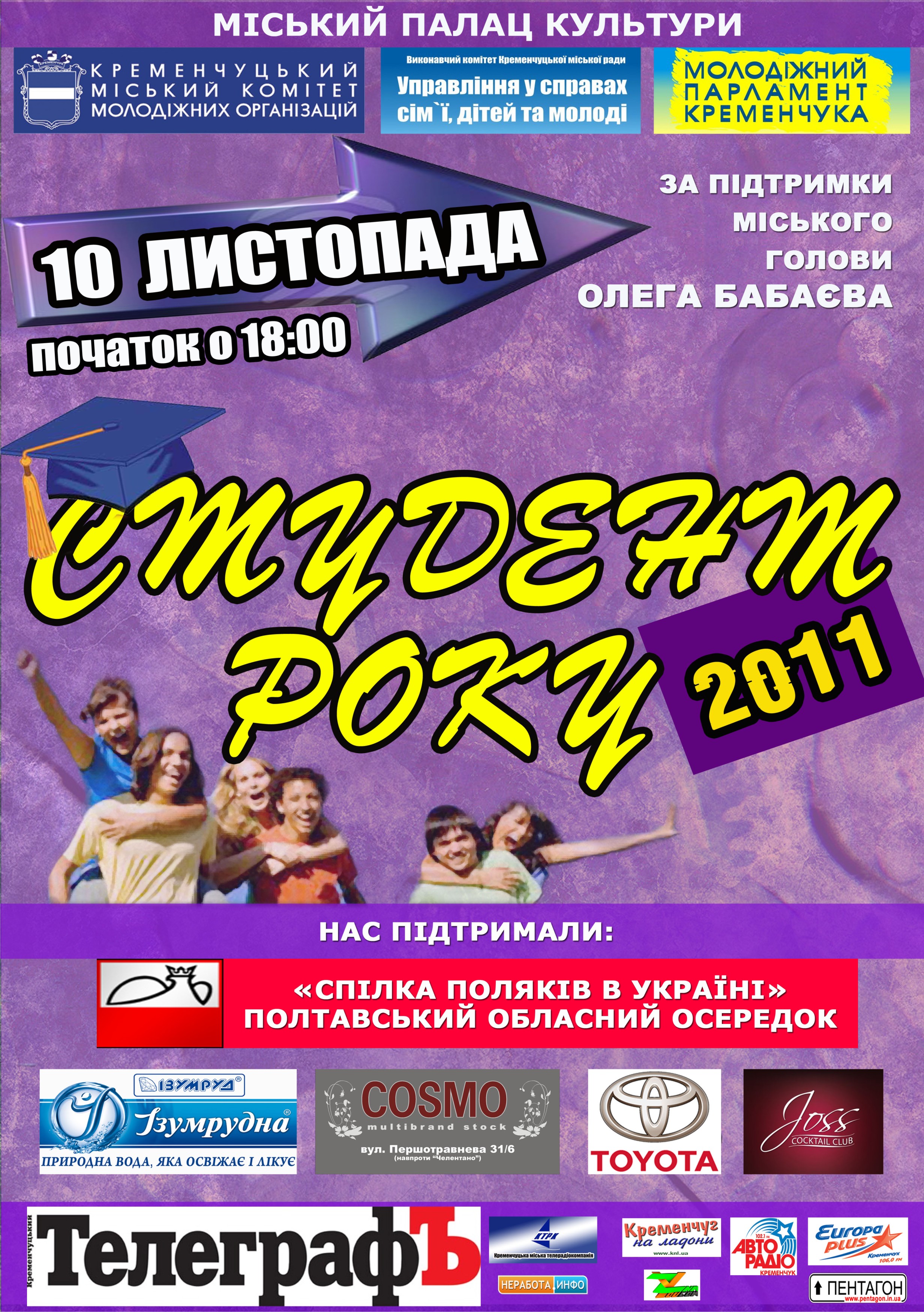 К 3-летию арт группы «Творческий Кременчуг» в нашем городе пройдёт первый поэтический слэм (соревнование поэтов в артистическом чтении, популярное в крупных городах). За звание лучшего будут соревноваться авторы из Кременчуга, Полтавы, Светловодска, Комсомольска и Харькова.