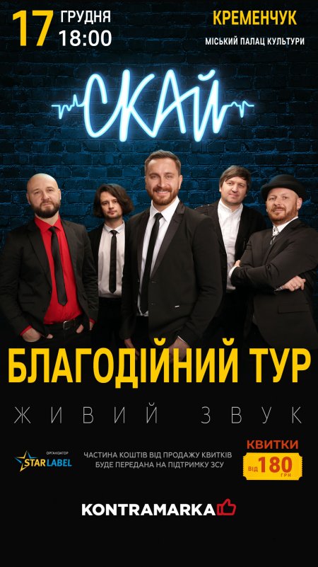 Закінчуються квитки на концерти СКАЙ, які відбудуться у Полтаві 16 грудня та в Кременчуці 17 грудня