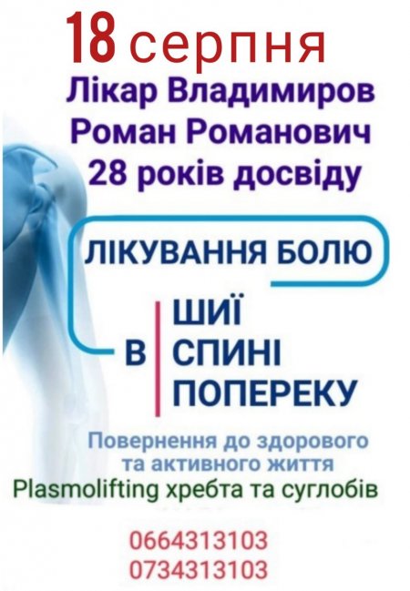 Київський центр вертебрології доктора Владимирова відновлює прийом пацієнтів у м. Кременчук за новою адресою: вул. лікаря О. Богаєвського, 13А, каб. 4А.