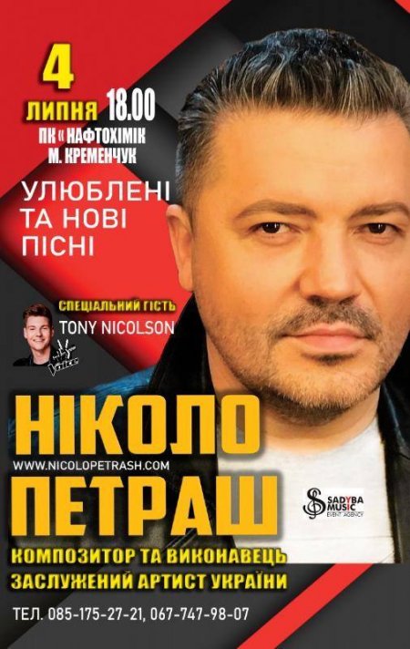 Концерт Ніколо Петраш в Кременчуці відбудеться 4 липня 2021 р. о 18:00 в БК Нафтохімік.