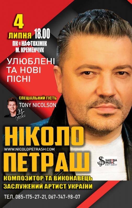 Концерт Ніколо Петраш в Кременчуці відбудеться 4 липня 2021 р. о 18:00 в БК Нафтохімік.