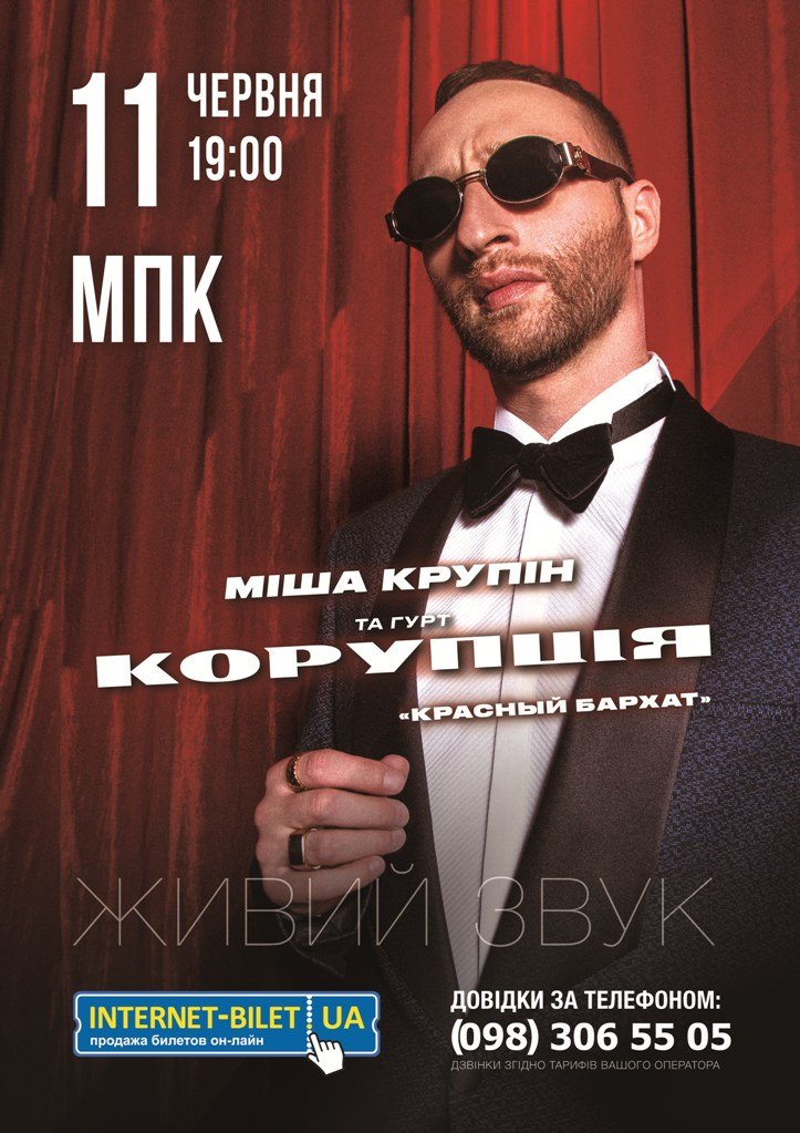 11 червня у нашому місті виступатиме Міша Крупін та гурт "Корупція". Концерт відбудеться у МПК о 19:00.