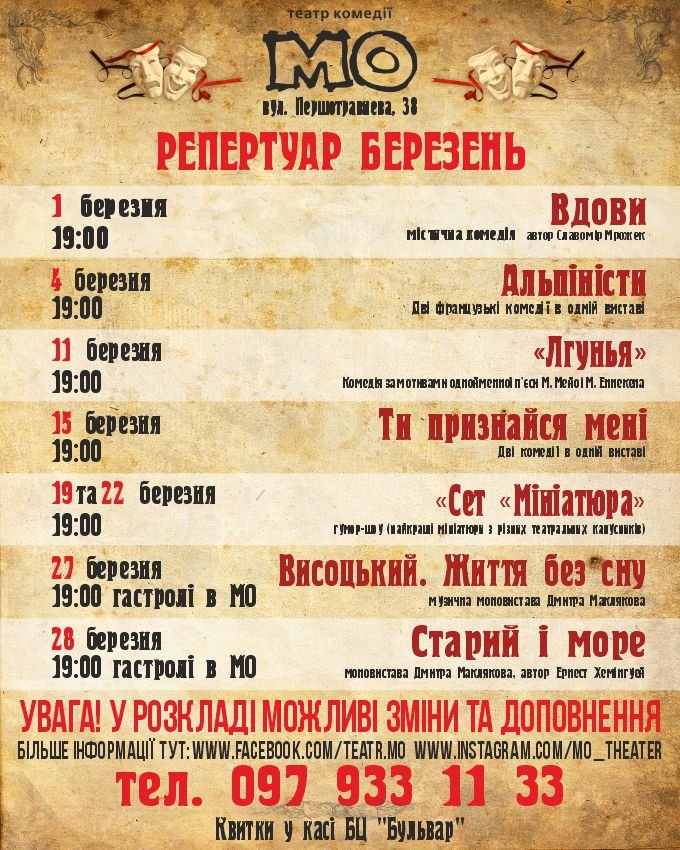 Чекаємо вас 15 березня о 16:00 у Міському палаці культури