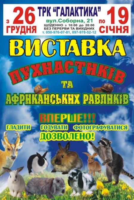 С 26 декабря по 19 января на пятом этаже ТРК «ГАЛАКТИКА» кременчужане и гости нашего города могут посетить выставку пушистиков и африканских улиток.