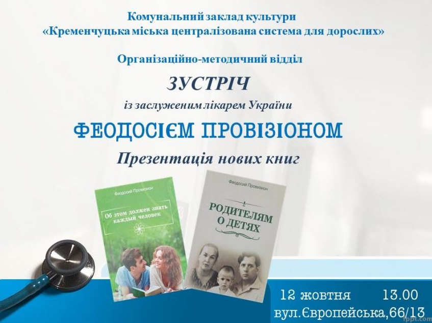 Почесний громадянин Кременчука зустрінеться з охочими в бібліотеці