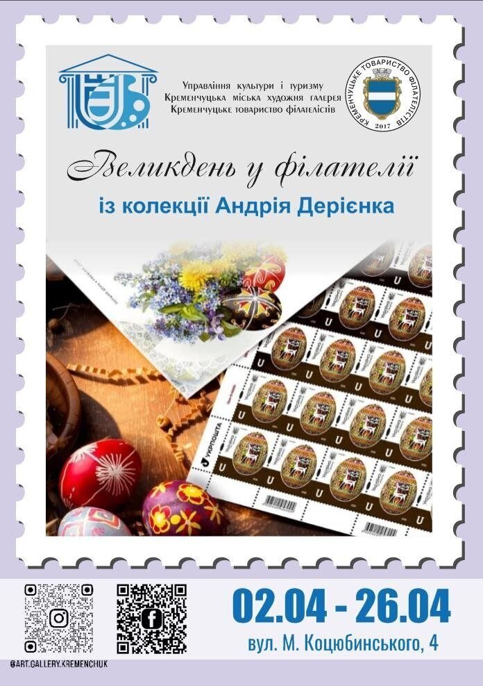 Також у галереї відкриють експозицію «Пасха у філателії» з колекції Андрія Дерієнка. Там можна буде побачити поштові марки, конверти та листівки із великодньою тематикою.