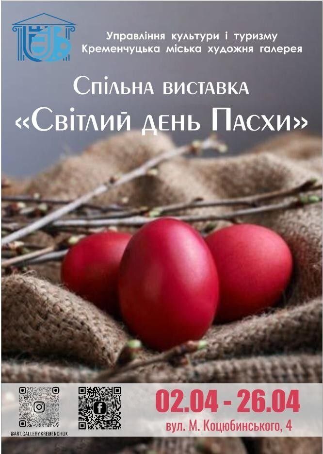 Відвідувачам покажуть колективну виставку «Світлий день Великодня». На ній представлятиме живопис і декоративно-ужиткове мистецтво, що поєднує традиційні великодні мотиви з сучасними інтерпретаціями.