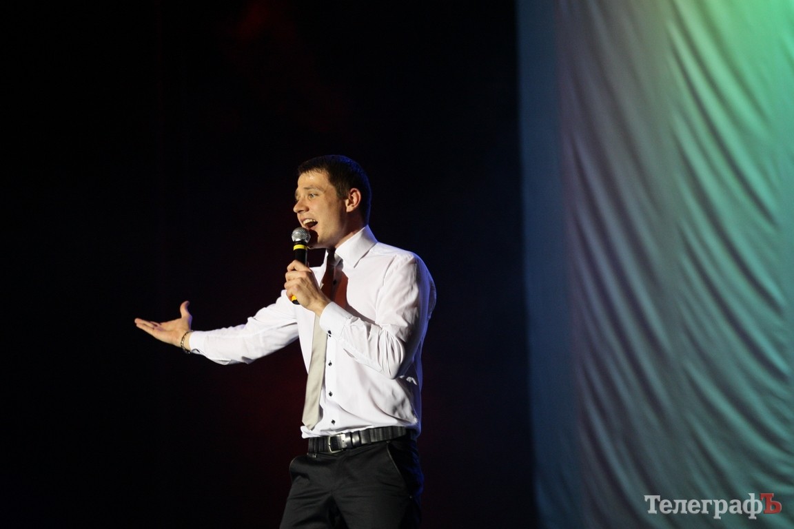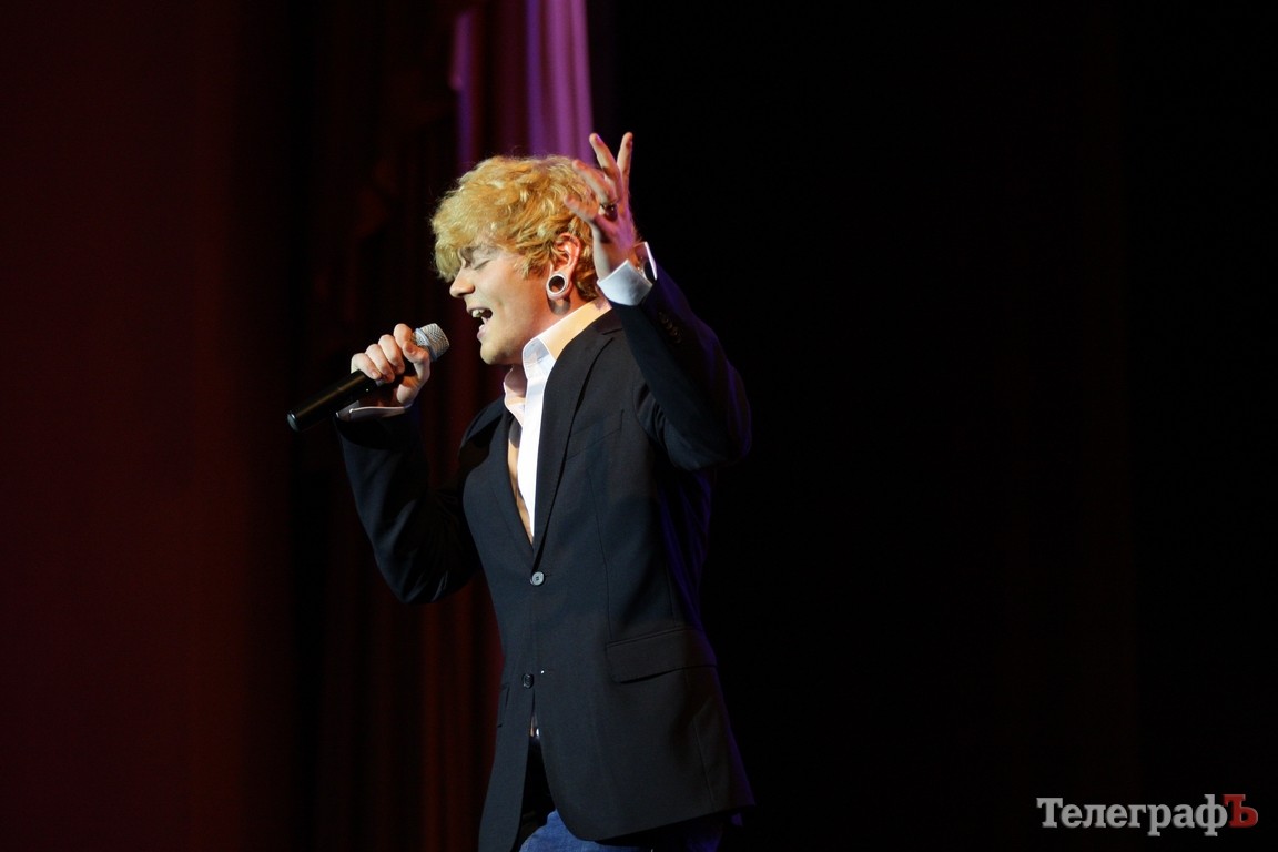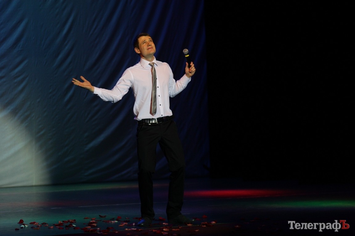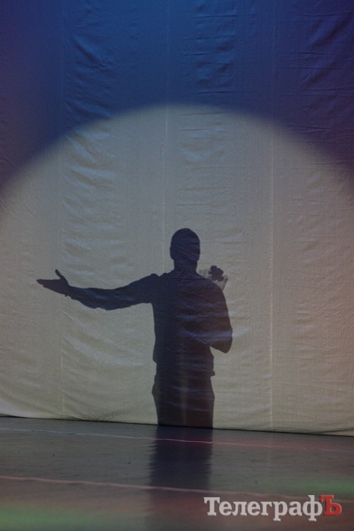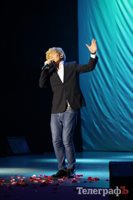 Александр Кривошапко появился перед журналистами «Телеграфа» с 45-минутным опозданием. При этом он уже успел подготовить свой голос к концерту и загримировался. Сидя за столом в расстегнутой белой рубашке с мобильником в руках, он приветливо улыбнулся и сказал, что готов отвечать на любые вопросы.