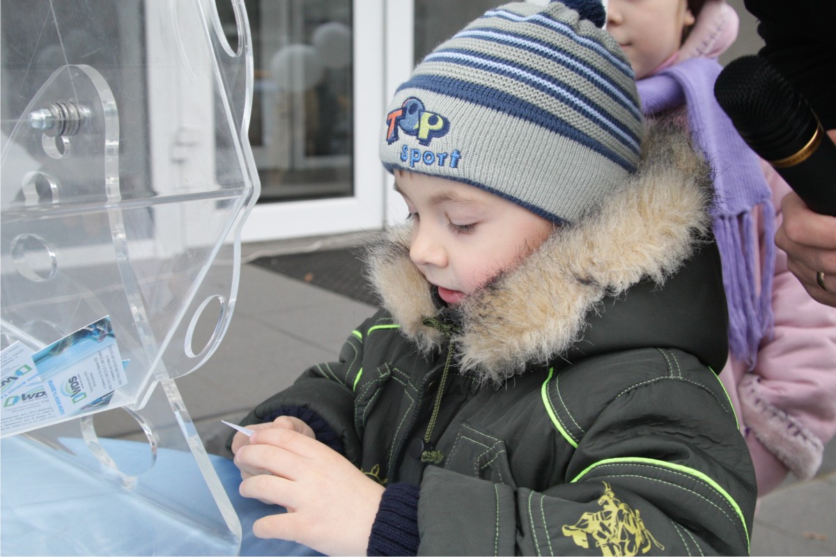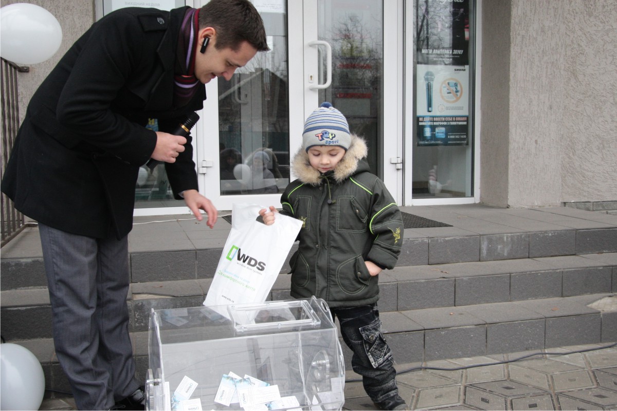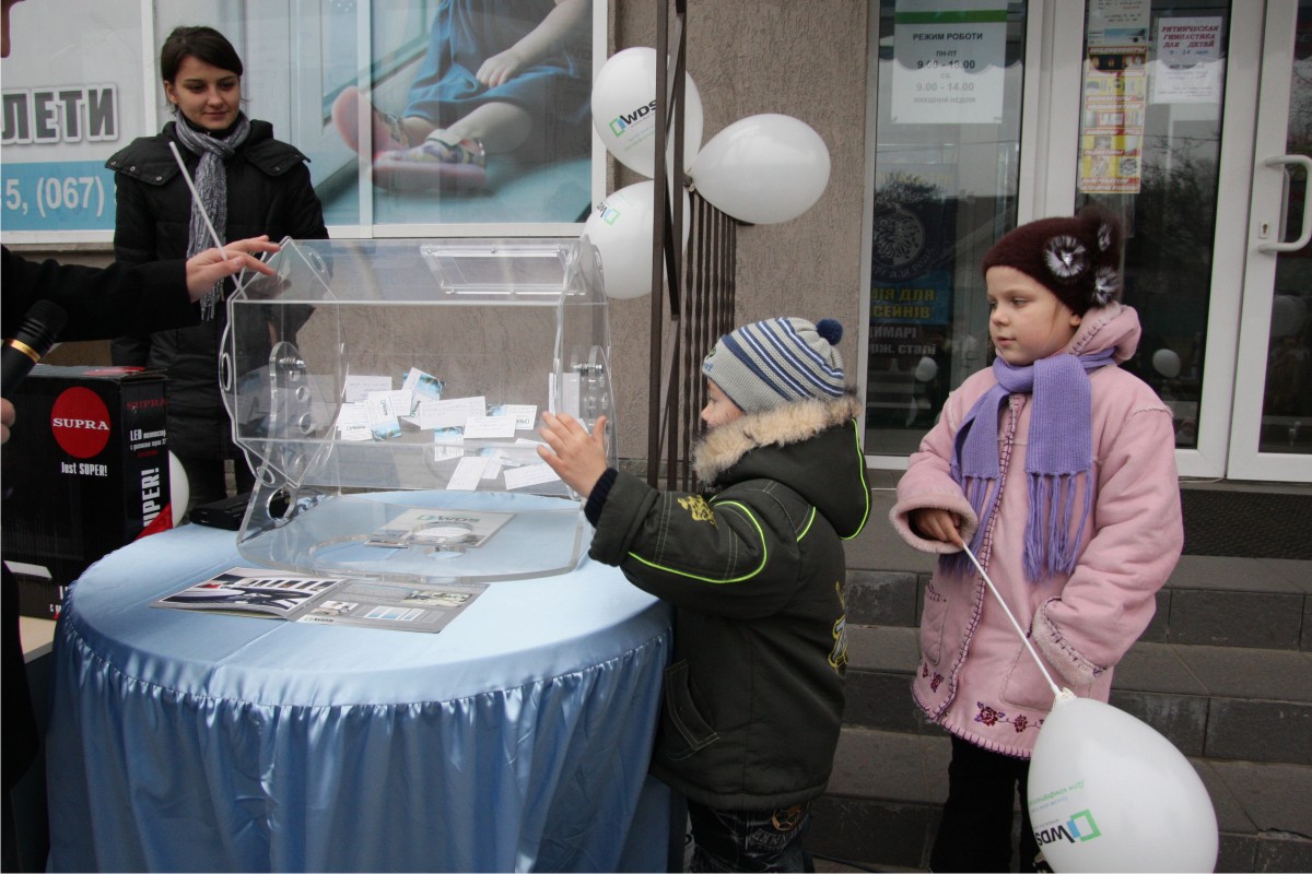 Визначати щасливчиків ведучому допомагали наймолодші учасники. Діти залюбки крутили лототрон та називали імена переможців. Головну інтригу – кому ж дістанеться телевізор – залишили на сам кінець. Серед учасників розіграли також електричний чайник та термос.