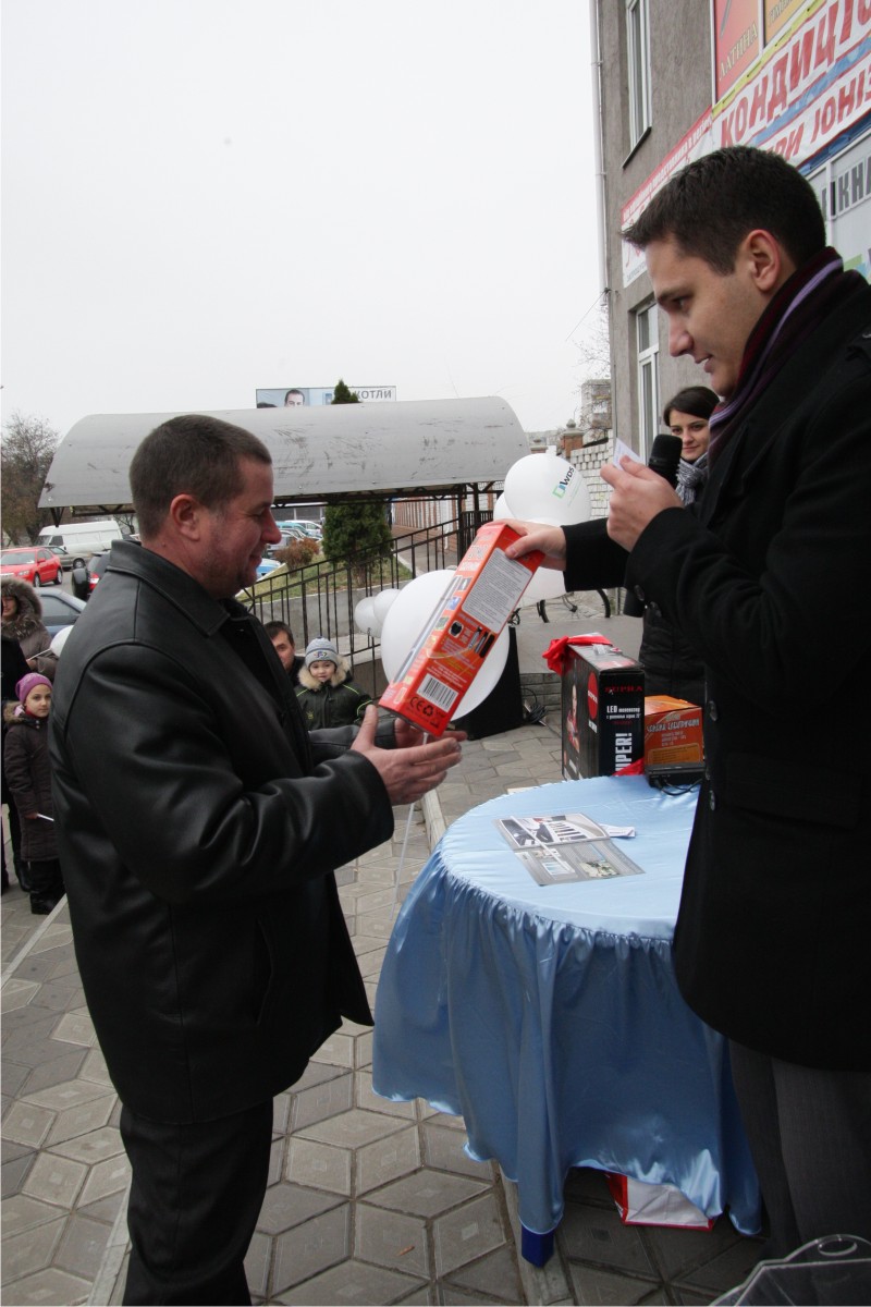 У неділю, 20 листопада, на вулиці В. Бойка, 7а було людяно. Цього дня компанія «Оконіка» роздавала подарунки своїм клієнтам. З порожніми руками не пішов ніхто – кожен клієнт, який протягом минулого місяця замовив вікна WDS , отримав приз. А головний подарунок – телевізор – дістався щасливчику. Його обрали жеребкуванням.