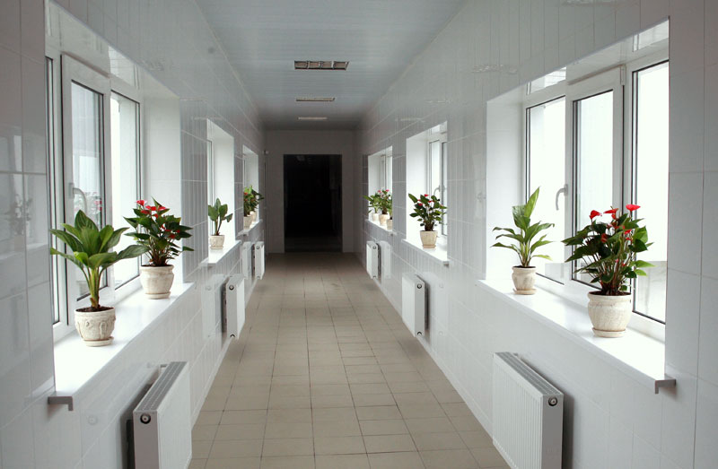 Сама галерея украшена цветами и картинами. В конце — автоматизированный санпропускник, через который проходит каждый работник предприятия.