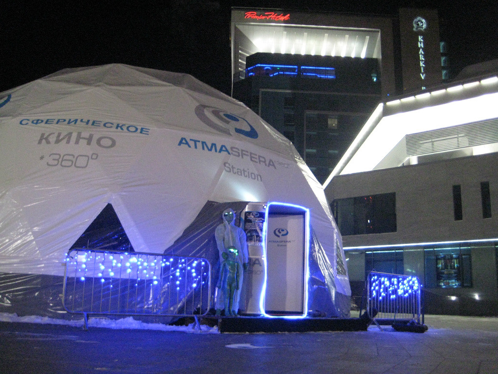 ATMASFERA360-cферическое кино – это кино, изображение которого с помощью проекторов выводится на купол с обзором 360 градусов. При этом зритель сидит под этим куполом, и, таким образом, имеет возможность видеть картинку вокруг себя. Это именно такая опция, которая недоступна в привычном формате просмотра фильмов, что делает проект ATMASFERA360 уникальным и выгодно отличает его от похода в обычный кинотеатр.