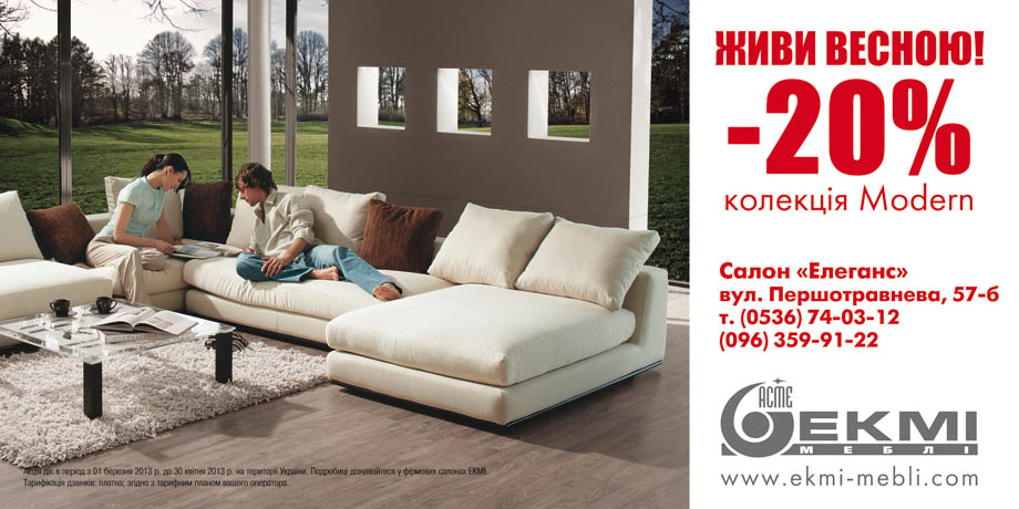 Мы дарим Вам возможность сэкономить 20% на покупку мягкой мебели ЭКМИ из коллекции модерн!