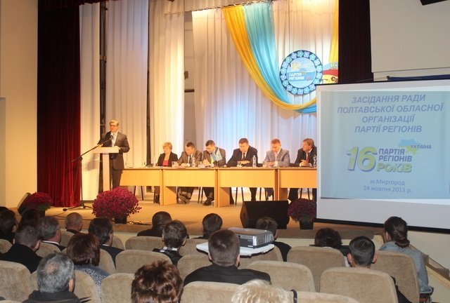 Днями в Миргороді відбулося розширене засідання Ради Полтавської обласної організації ПАРТІЇ РЕГІОНІВ. Воно присвячувалося 16-ій річниці створення партії. Виступаючи на засіданні, голова обласної організації, голова облдержадміністрації Олександр Удовіченко, зокрема, сказав: «В цьому році нашій політичній силі – 16 років, і, треба визнати, що це вже не «дитячий» вік. В українських реаліях ми стали найсоліднішим, найавторитетнішим політичним об’єднанням. Конкретними справами ми втілюємо свою мету – розбудувати Україну як сильну, конкурентну державу, забезпечити формування заможних громад і захищених громадян. Влада в нашому розумінні – це синонім поняття відповідальності».