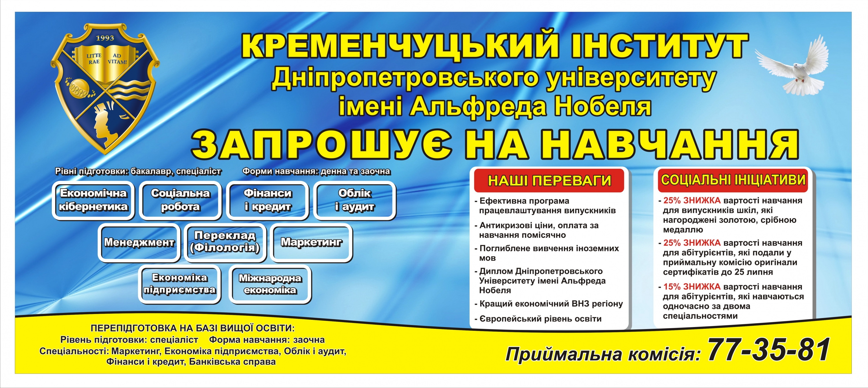Приймальна комісія: тел. 77-35-81