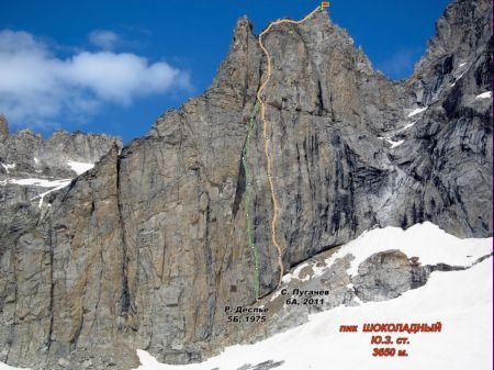 Новый маршрут проложен по «зеркалу» Юго-Западной стены пика (правее маршрута француза Р. Деспье 1975 года). Предполагается 6А категория сложности. Он технически сложнее маршрута на в. Кирпич по левой части Западной стены, пройденного в этом районе группой в 2007 году, за который нашей команде тогда были вручены серебряные медали Чемпионата страны.