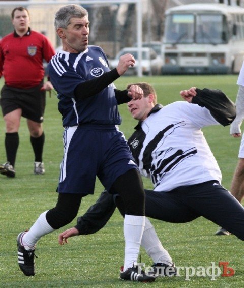 Первым счёт в матче открыли милиционеры, Олег Бажан закончил сольный проход классным ударом в дальний угол. Отыгрался «Кремень» ближе к концу тайма, когда фланговую передачу Олега Бабаева замкнул Александр Поляков. Кстати сказать, депутаты провели серьёзную селекционную работу после последней игры с военными. Так, на трансферном рынке были преобретены несколько профессиональных игроков, ветеранов «Кремня» Сергей Свистун, Владимир Коновальчук, Александр Самара и Александр Поляков. Это усиление, по словам Олега Бабаева, конечно же, было согласовано с соперником. Но как пошутил мэр Кременчуга перед началом матча: «Удостоверения работников исполкома мы им выписали, так что у нас всё почесному, можете даже не проверять».