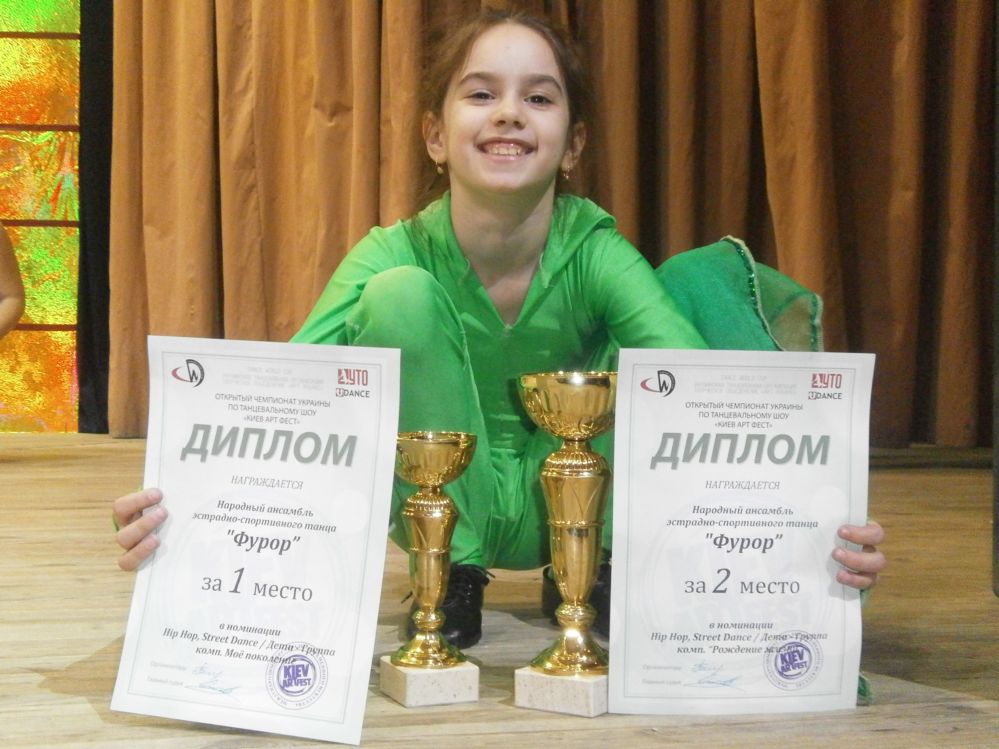 В своей номинации кременчугский Народный ансамбль эстрадно-спортивного танца "Фурор" стал чемпионами Украины в номинации Jazz, Show Dance, Musical, заняв 1 и 2 места! О серьёзности фестиваля говорит состав жюри – это Владимир Кирсанов (Москва), Заслуженный артист России, профессор Российской академии театрального искусства (РАТИ - ГИТИС). Кристина Шишкарёва (Киев), преподаватель джаз модерн в Киев Модерн Балет (труппаРаду Поклитару), балетместер Киевского Муниципального академического театра для детей и юношества. Jean-Louis Cabane(Франция) - топ-специалист Dance World Cup, арт-директор Disneyland в Париже.
