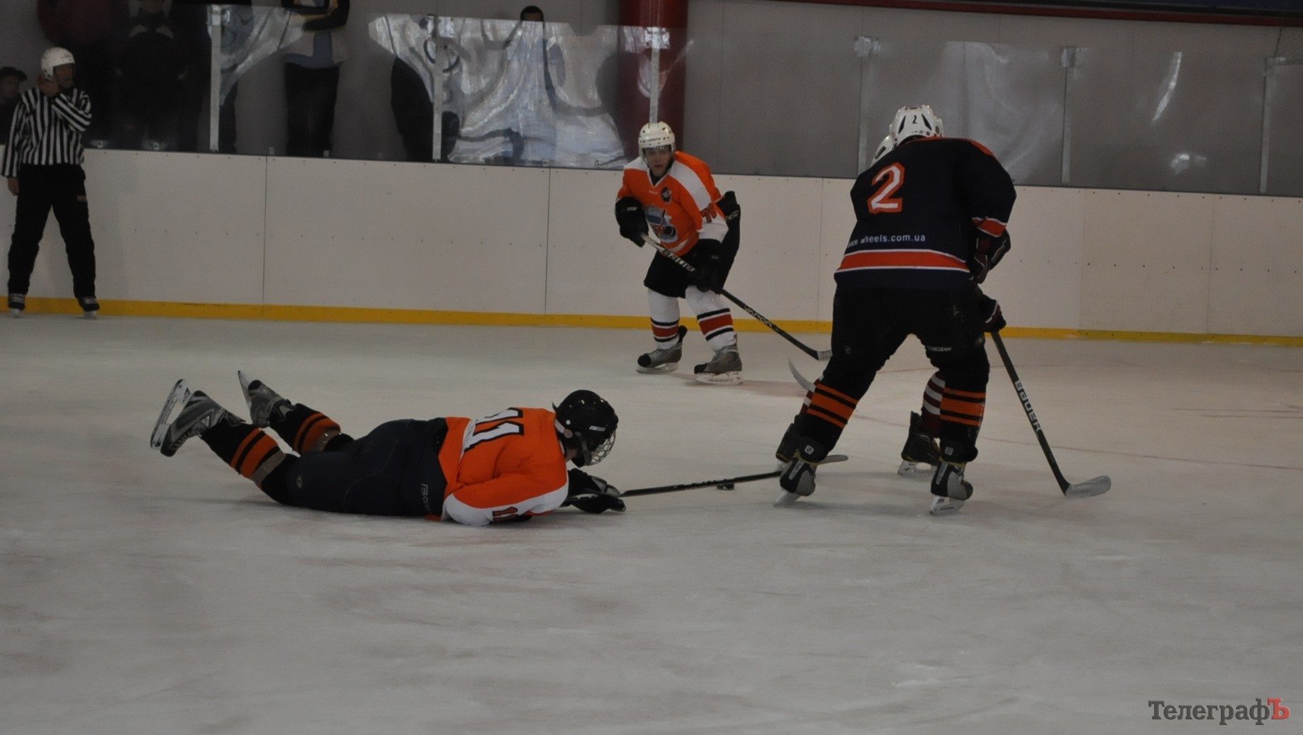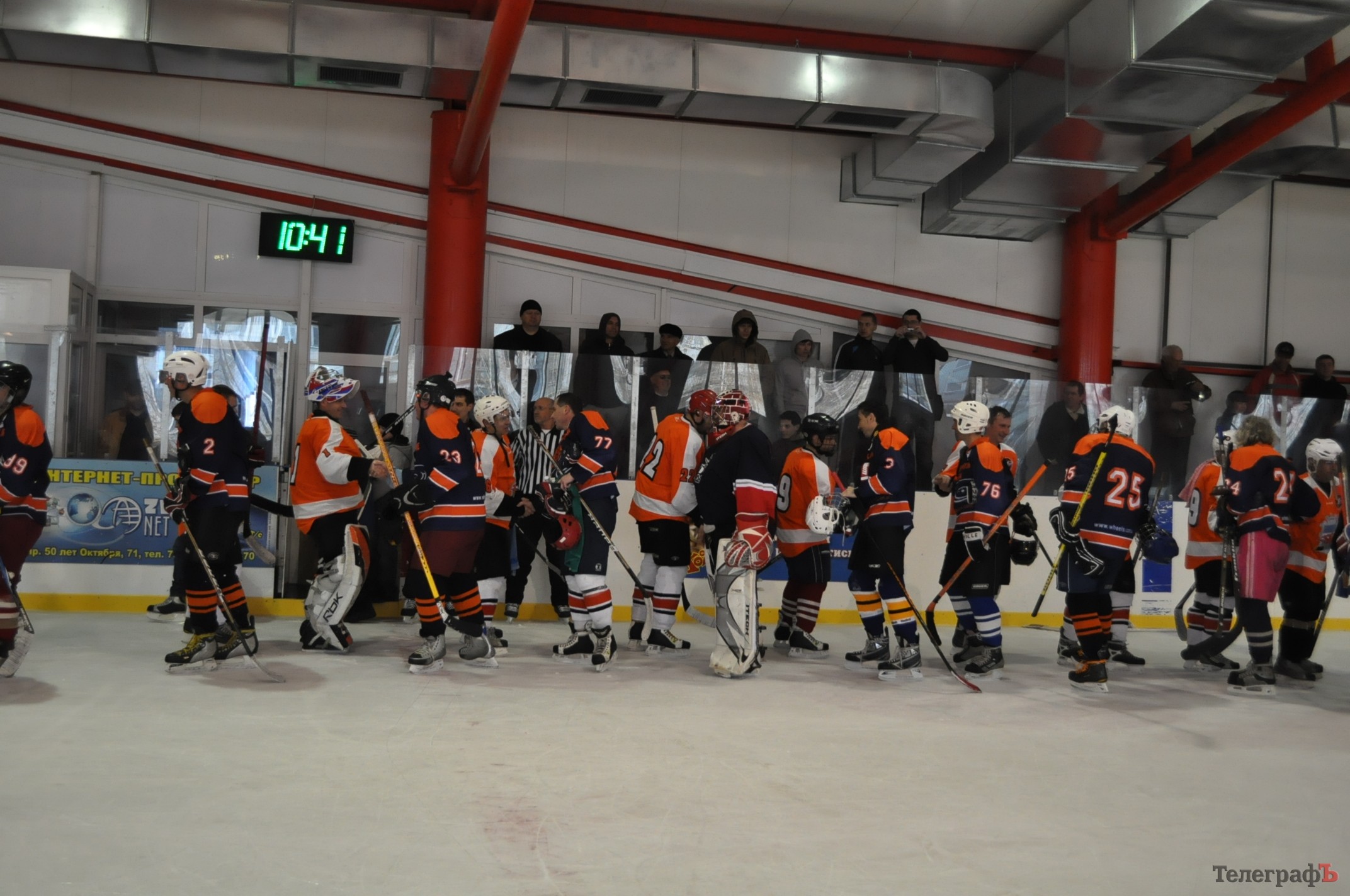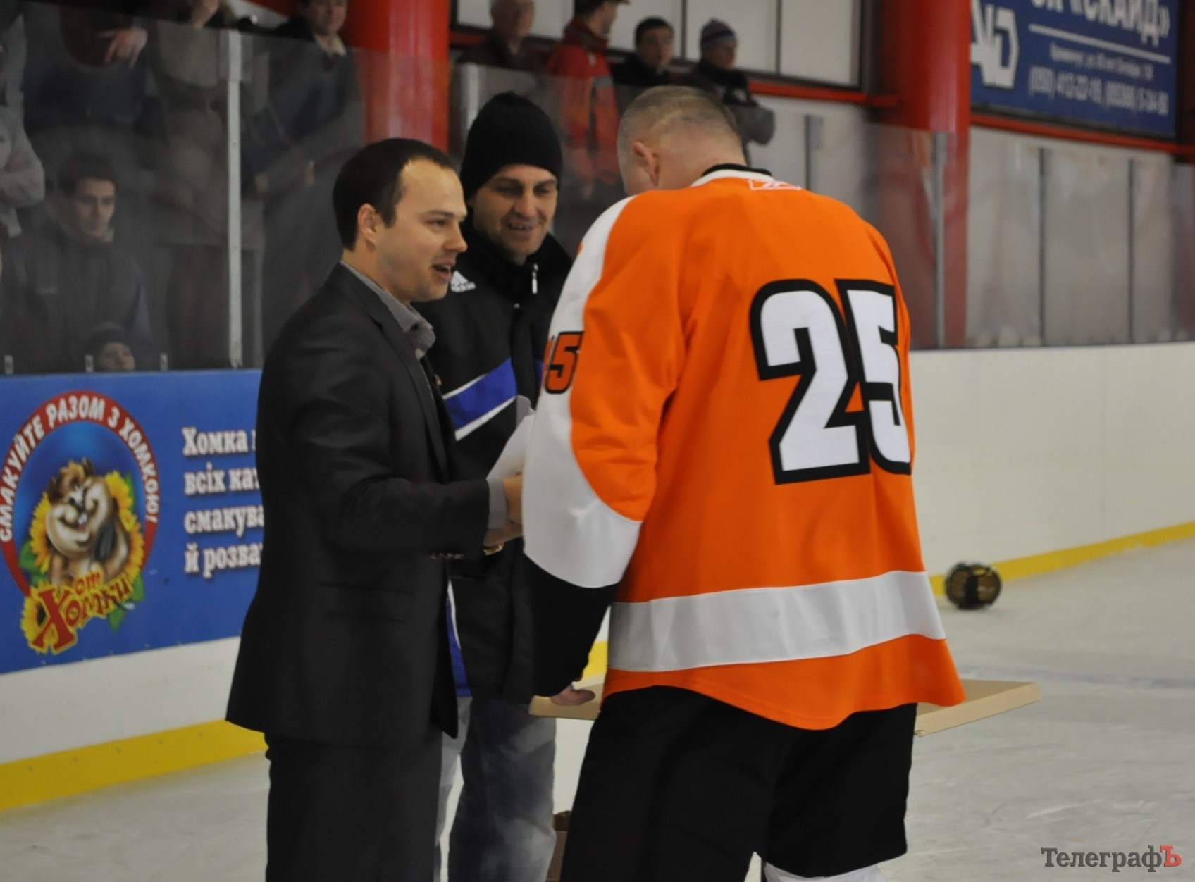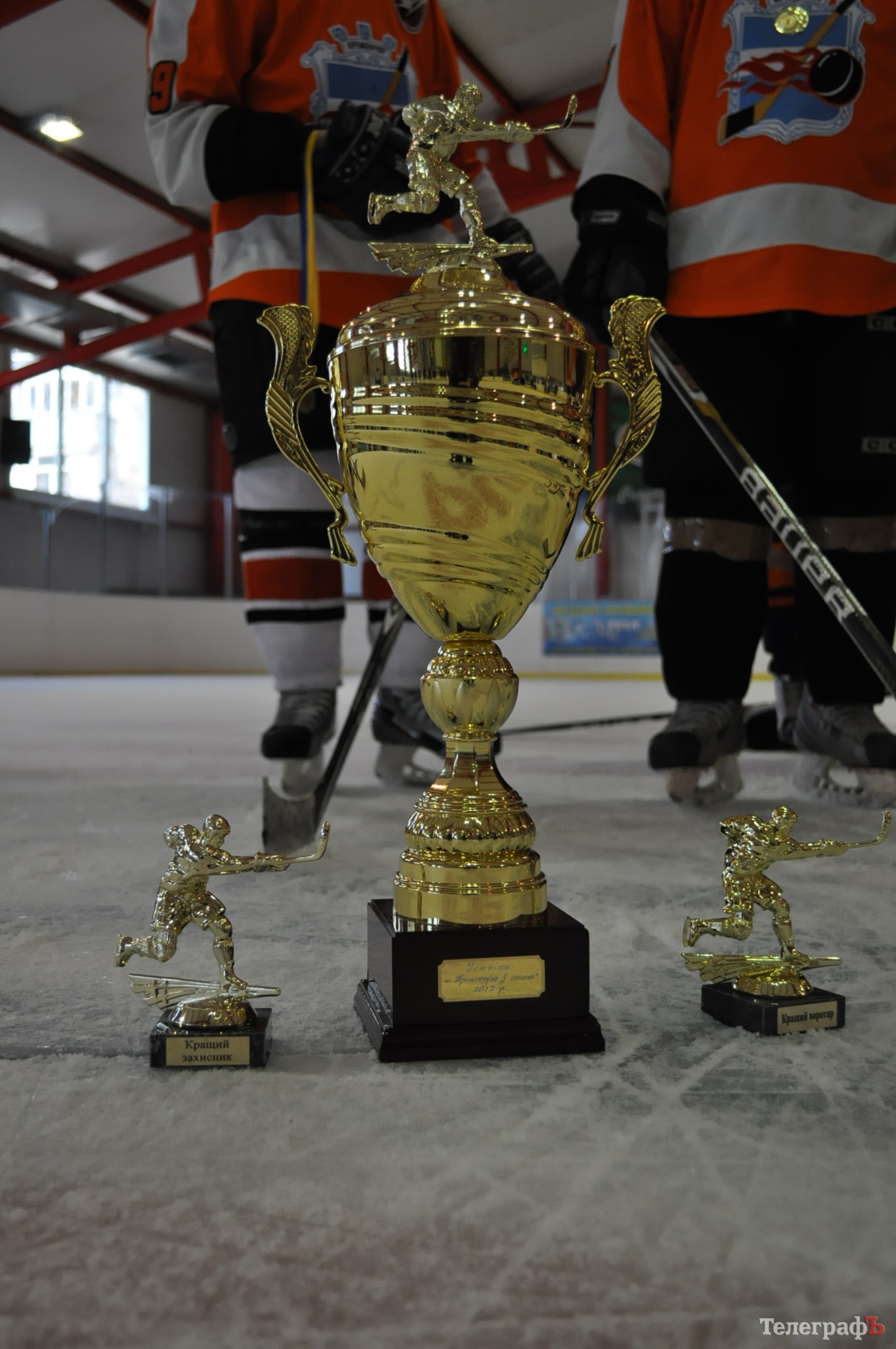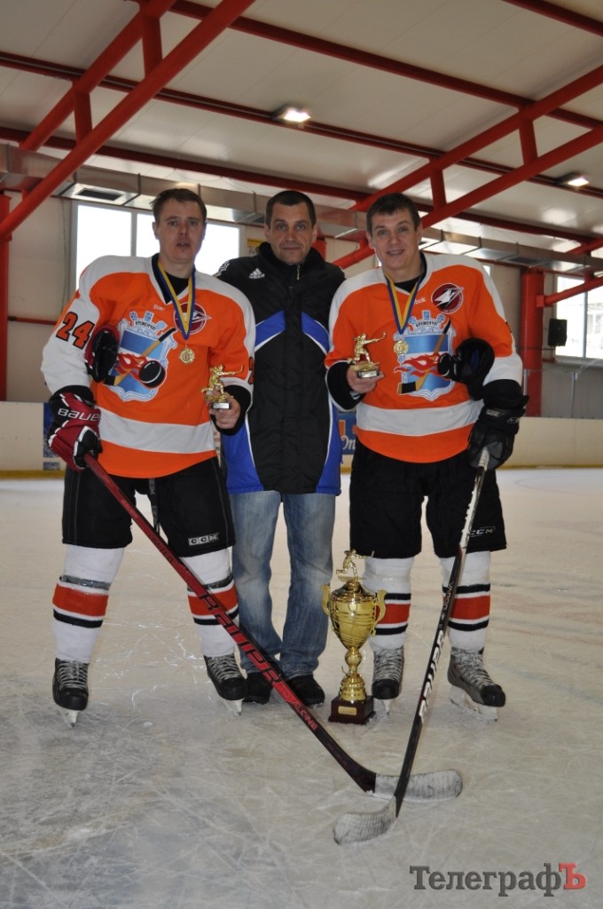 В финальном поединке встречались ХК "Кременчуг" и ХК "Кременчугские колёса". Фаворитом противостояния, безусловно, считался ХК "Кременчуг" и, с первых минут матча, его хоккеисты начали это доказывать. Преимущество ХК Кременчуг начало претворяться в голы к 13 минуте матча, когда после мощного щелчка Владимира Олейника шайба срикошетила в левый нижний угол ворот "колёсников" - 1:0. Буквально в следующей атаке бросок Андрея Смирнова в паутину верхнего угла сделал счёт 2:0 в пользу ХК Кременчуг. Оставшиеся до конца периода 5 минут Кременчуг провисел на воротах деморализованных быстрым развитием событий Колёс, нанеся в створ ворот десяток бросков, но оборона выдержала. На первый перерыв команды ушли при счёте 2:0. Второй период начался с атак ХК Кременчуг, стремившегося закрепить успех. И буквально на первых минутах периода шайба после броска Юрия Яцухи в третий раз оказалась в воротах Колёс - 3:0. При таком голевом заделе сомнения в исходе матча практически исчезли. Одна из редких атак колёсников ближе к середине периода немного возродила интригу, в большинстве отличился Геннадий Мазурец - 3:1. Оставшееся до конца периода время, команды доиграли при значительном преимуществе ХК Кременчуг, но забитых шайб зрители больше не увидели. В третьем периоде ХК Кременчуг постепенно увеличивал давление на ворота Колёс и на 8 минуте шайба после щелчка Юрия Яцухи угодила в штангу, после неё в спину вратаря и в ворота - 4:1, разгром становился реальностью. Ещё через три минуты Юрий Яцуха сделал хет-трик - 5:1. Хоккеисты Колёс перешли на игру "пропустить как можно меньше" и отбивались. В одной из атак Григорий Смирнов удачно подставил клюшку под бросок партнёра - 6:1. И за три секунды до финальной сирены окончательный счёт матча установил Сергей Мазур, выйдя один на один с кипером соперников - 7:1. Убедительная победа ХК Кременчуг и первый титул официального Чемпиона города завоёван. Команда под руководством Михаила Кириленко завоевала очередной трофей и на достигнутом останавливаться не собирается. Второе место за Кременчугскими колёсами, а третью строчку занял ХК Кременчуг-2. Призы от официального спонсора соревнований ТМ "Александрия" - переходящий красавец Кубок победителю и комплекты медалей призёрам вручал депутат городского совета Александр Березянский. Также были определены лучшие игроки финального турнира. Индивидуальных призов были удостоены: Лучший защитник - Смирнов Григорий, лучший вратарь - Липовой Александр, лучший нападающий - Смирнов Андрей и лучший игрок турнира - Мазур Сергей. ![]()