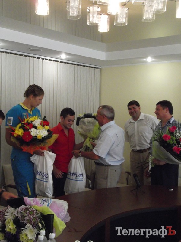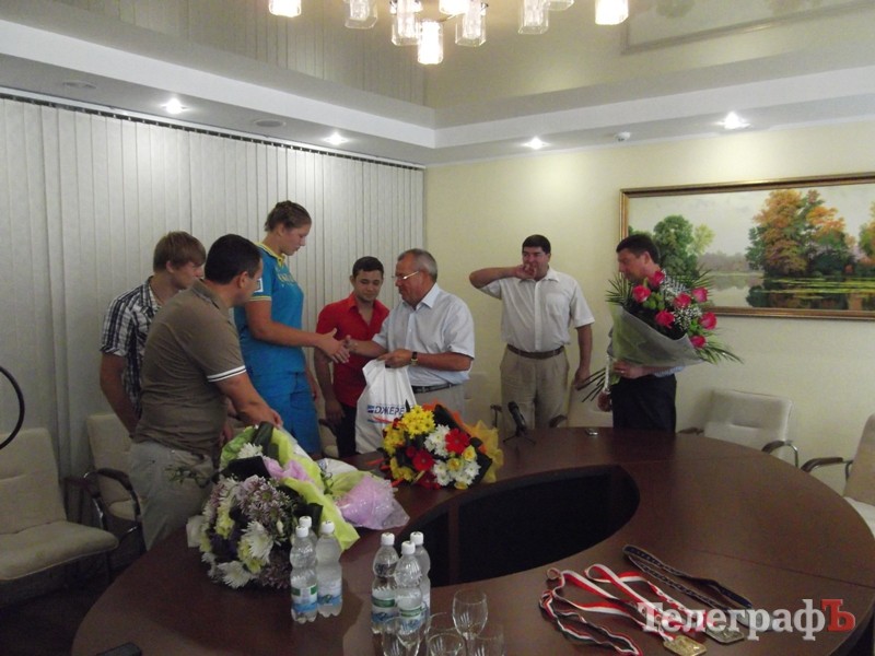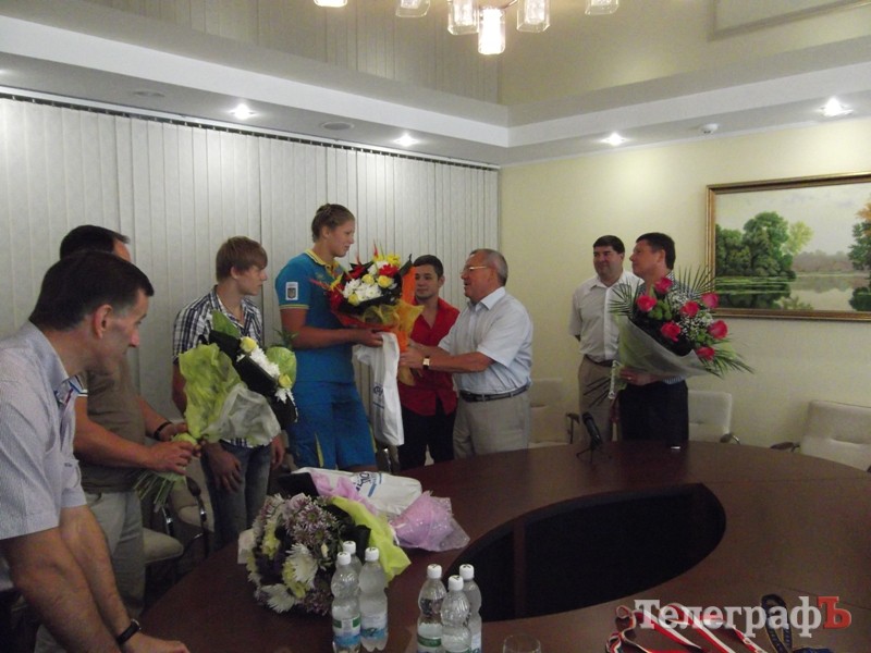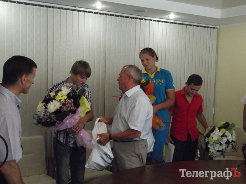 Заместитель мэра Виктор Калашник, заместитель председателя областного управления по делам молодежи и спорта Игорь Петраш совместно с почётным президентом КСЕ «Легион» Владимиром Матицином поздравили молодых чемпионов Елизавету Каланину, Андрея Кушкова и Антона Чигирика с очередными успехами в 2012 году, а также их тренера и национальной юниорской сборной Украины Василия Волошина.