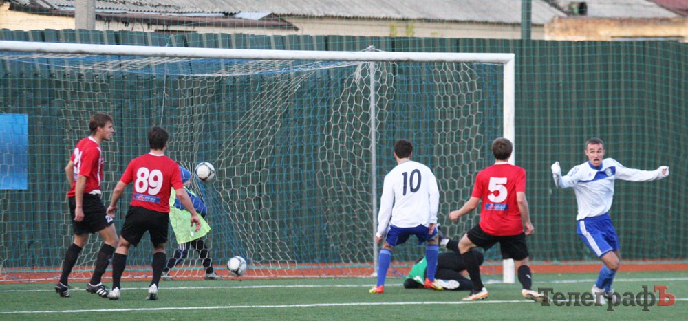 Начало матча можно смело занести в актив хозяев. Уже на 13-й минуте Евгений Апришко опасно пробил с 20-ти метров, но мяч прошёл возле «девятки». А через несколько минут вратарь гостей не успел зафиксировать мяч в руках, но Евгений Волга не сумел воспользоваться этой ситуацией, так же, как и Андрей Бацула, который после отскока мяча из убойной позиции пробил с «нерабочей» правой ноги мимо ворот.