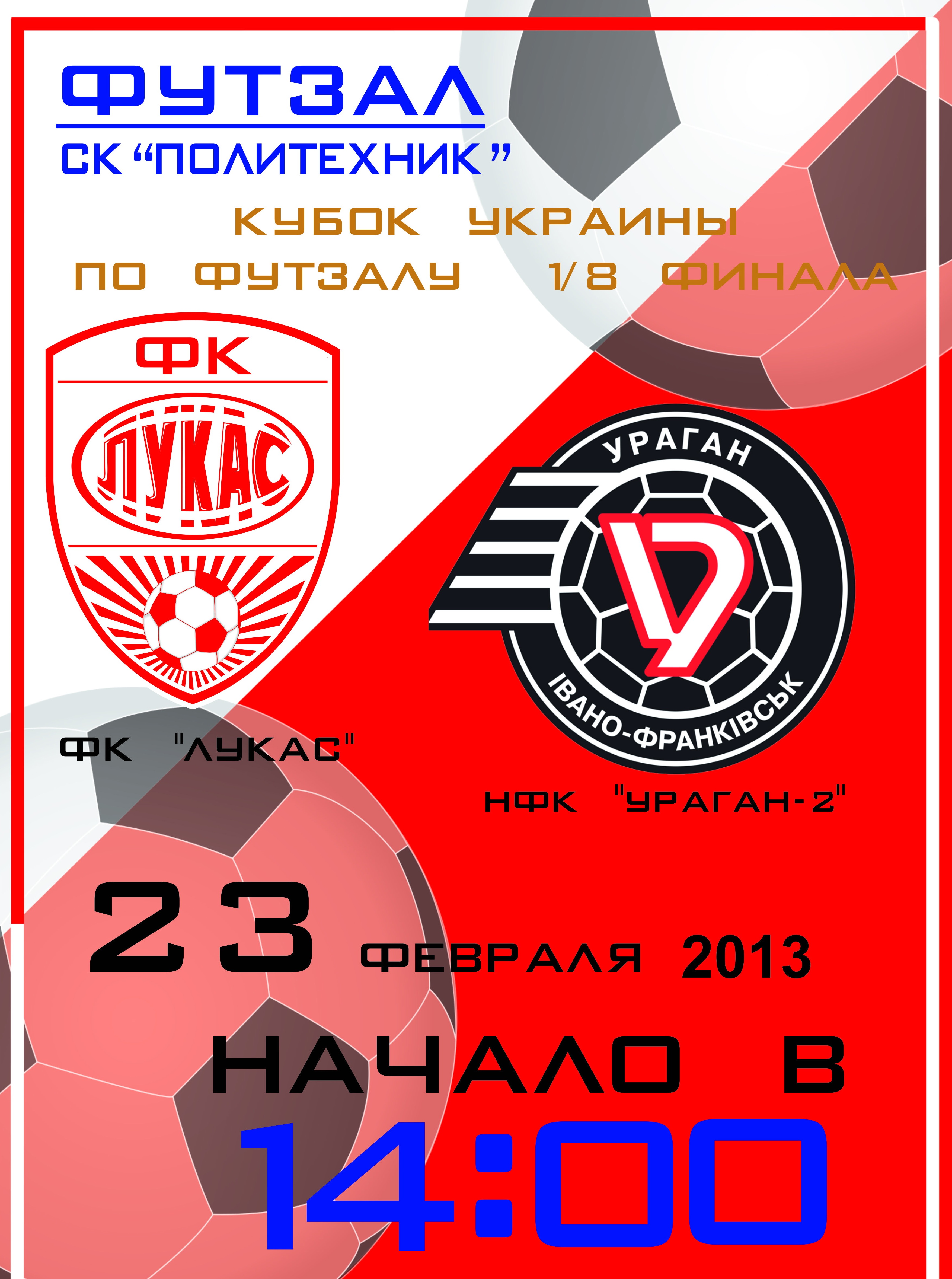 23 февраля в СК «Политехник» ФК «Лукас» в 1/8 финала Кубка Украины встретится с ивано-франковским «Ураганом-2»