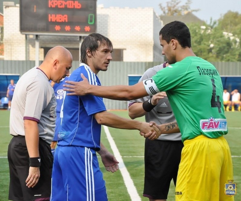 Перейдём к самой игре, которую «Кремень» начал активнее, и уже в начале матча Виталий Сумцов обозначил преимущество хозяев первым ударом в створ ворот «Нивы». Затем свою позицию на поле продемонстрировал и арбитр матча Дмитрий Кривушкин, «наградив» Вячеслава Гади жёлтой карточкой за чистый подкат против соперника. То, что Гади был на мяче первым, красноречиво свидетельствует ВИДЕО, но ни арбитр, ни его 2-й ассистент, находящийся в нескольких метрах от эпизода, этого почему-то не увидели. Следующий момент у ворот «Нивы», который был более опасен предыдущего, создали Сергей Степанчук и Вадим Барба. Первый выполнил классный прострел с левого фланга, а второй не попал как следует по мячу из выгодной позиции. На 35-й минуте Сумцов приложился к мячу уже значительно сильнее, но, как и в первом эпизоде, пробил прямо по центру ворот. Свой статус перволиговой команды «Нива» продемонстрировала в конце первого тайма, когда длинным зрячим пасом за спины центральных защитников на удар был выведен Василий Товкацкий, мощный удар слёта которого приняла на себя крестовина ворот Виталия Прокопа.