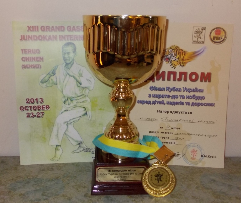 По результатам Кубка Украины кременчужанин Сергей Калиниченко завоевал два “золота” в разделах ката кобудо (работа с холодным оружием - автор) и ката каратэ в возрастной категории “Ветераны 36+”. Две серебряные награды на счету Дмитрия Тараненко - в разделе ката кобудо и ката каратэ в категории “Взрослые 18+”. Четвёртую золотую медаль в актив области записал руководитель Полтавского городского отделения каратэ Евгений Пилипенко - в сложных полноконтактных боях.