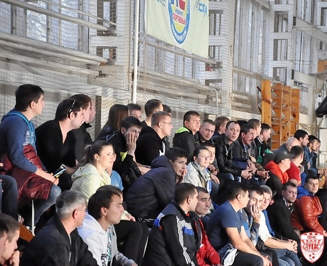 В начале второго тайма Кирилл Смирнов откликнулся на пас Цвелых с углового и точным ударом вывел «Лукас» вперёд. «Эпицентр» отвечал очень опасно, но просто блестяще отыграл матч Сергей Прихожий, которому мы отдаём приз самого ценного игрока матча. Чуть позже Антон Тарасенко, как настоящий боец доработал, уже казалось бы, проигранный эпизод до конца и забил седьмой гол в ворота соперника. +2 – это уже намного спокойней. И можно было рассчитывать на контратаки, в которых ещё более увеличить свой отрыв в счёте. Но всё оказалось намного сложнее. За четыре минуты до конца игры «Эпицентр» переходит на игру в пять полевых игроков. На 37-й минуте вратарь киевлян Максименко пасом нашёл во вратарской Шевченко, и тот переправил мяч в ворота Прихожего. Однако арбитры не заметили этого тонкого касания, и автором гола в протоколе стал именно Максименко, хотя нам это абсолютно не важно.7:6 и играть по меркам футзала оставалось ещё очень много. При этом счёте два супермомента упустил наш тренер Валентин Цвелых. Неужели сработает известный всему миру футбольный закон «Не забиваешь ты…». От таких мыслей, честно сказать, стало жутковато. «Эпицентр» прижал нас к своим воротам и в одной из атак Сергей Прихожий трижды демонстрировал просто чудеса вратарского искусства, выручая «Лукас» от верных голов. Хотя, эти чудеса нашего капитана, можно назвать и по другому – опыт, мастерство и класс, чего у Сергее предостаточно. Отбились, секунду передохнули и снова сдерживать натиск соперника, который естественно не переставал нагнетать у наших ворот. Тут нервы сдали у Максиму Кульки, который нарушил правила в центре поля, а это нарушение было шестым… И снова все взгляды и мольбы болельщиков и игроков «Лукаса» были направлены в сторону Прихожего. Сергей и в этом эпизоде показал, что значит опытный и классный вратарь. Уже когда игрок после разбега вплотную приблизился к мячу, он выскочил к шестиметровой линии и когда бьющий игрок поднял голову и увидел практически перед собой вратаря, то от растерянности запустил мяч в сторону балкона. Трибуны заревели так, словно мы уже выиграли этот матч, но до финального свистка ещё было время и даже секунды могли всё изменить, о чём я расскажу вам чуть позже. И тут своё слово сказал Валентин Цвелых, как бы благодаря болельщиков за их скандирование в течении игры «Валик, Валик!». Розыгрыш аута, прокат мяч и мощный удар под перекладину – 8:6!!! Вот это уже точно победа. Финальный свисток застал «Эпицентр» в очередной атаке, но это уже ничего не меняло.