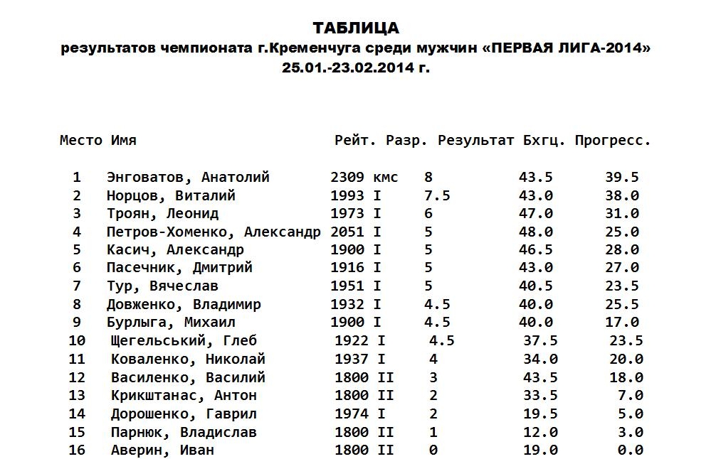 В детско-юношеском клубе «Дебют» ОДЮК прошёл чемпионат Кременчуга по шахматам среди мужчин «Первая лига-2014».