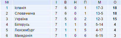 Турнірна таблиця: