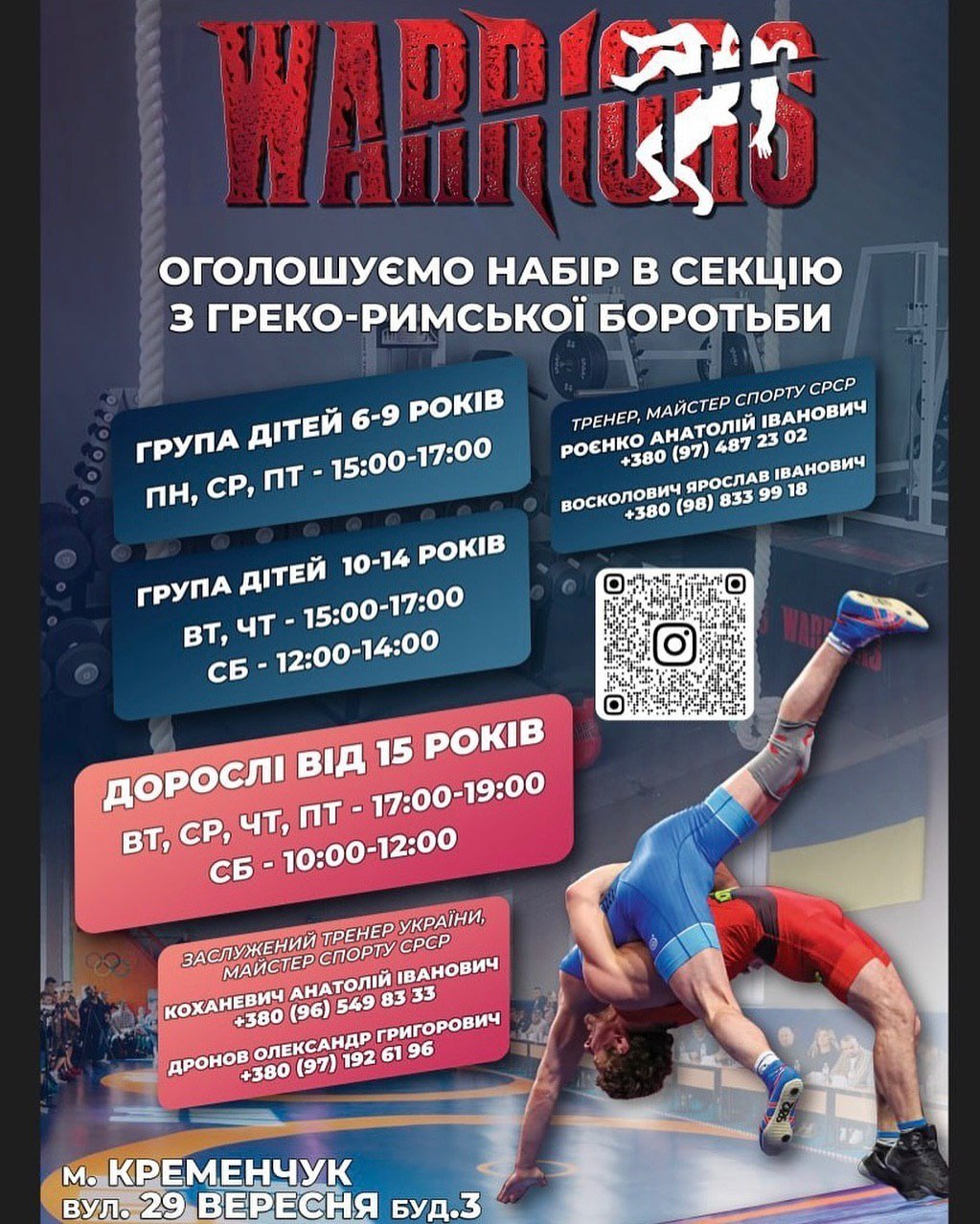 Нагадаємо, що спортзал греко-римської боротьби, де діти займатимуться на безоплатній основі, відкрили у Кременчуці наприкінці березня.