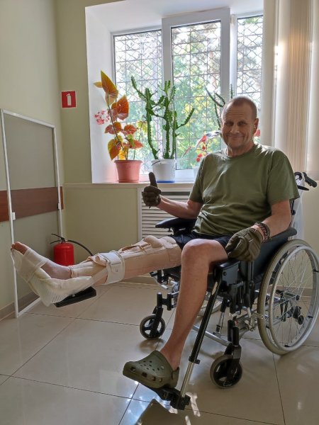 Потім — півтора десятка операцій. Йому вставляли імпланти замість барабанних перетинок, які лопнули. Йому лікували 9 перебитих ребер, забій грудної клітини, 5 разів відкачували рідину з легень, витягували осколки з печінки та ноги, тільки дві операції на кишківнику, 16 разів проводили гемодіаліз, аби запустити нирку…