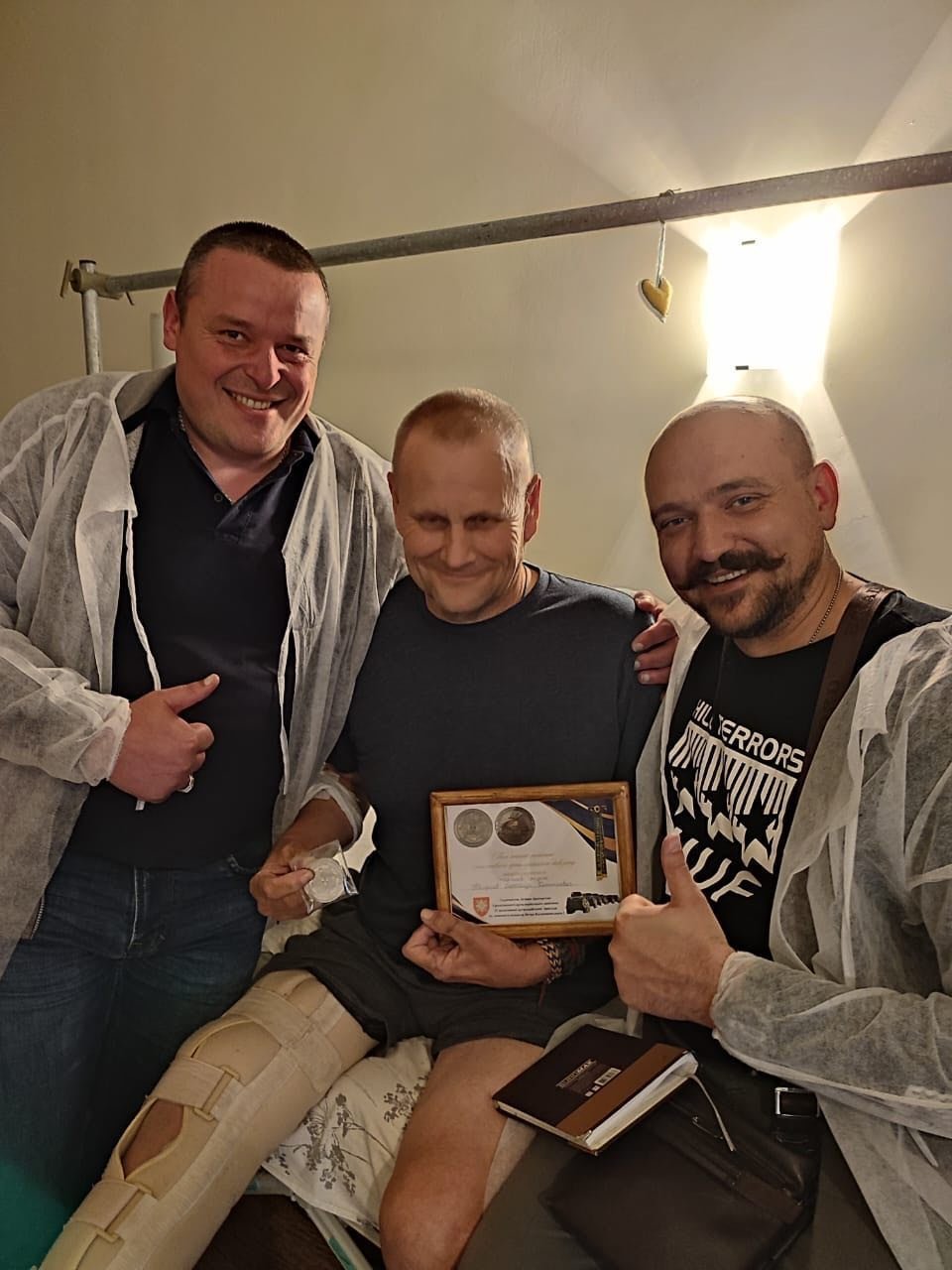 За сприяння доньки Катерини у травні до Олександра Дмитровича у лікарняну палату у Полтаві завітав Артем Погорілий, ветеран війни, який у 41-річному віці на фронті втратив ногу. Але вже дуже скоро став на протез, і повернувся до активного повноцінного життя — його можна побачити учасником різних спортивних змагань ветеранів. Артем був одним з тих, хто встановлював світовий рекорд зі стронгмену у жовтні 23-го року на тогорічному міжнародному фестивалі Арнольда Шварценеггера.