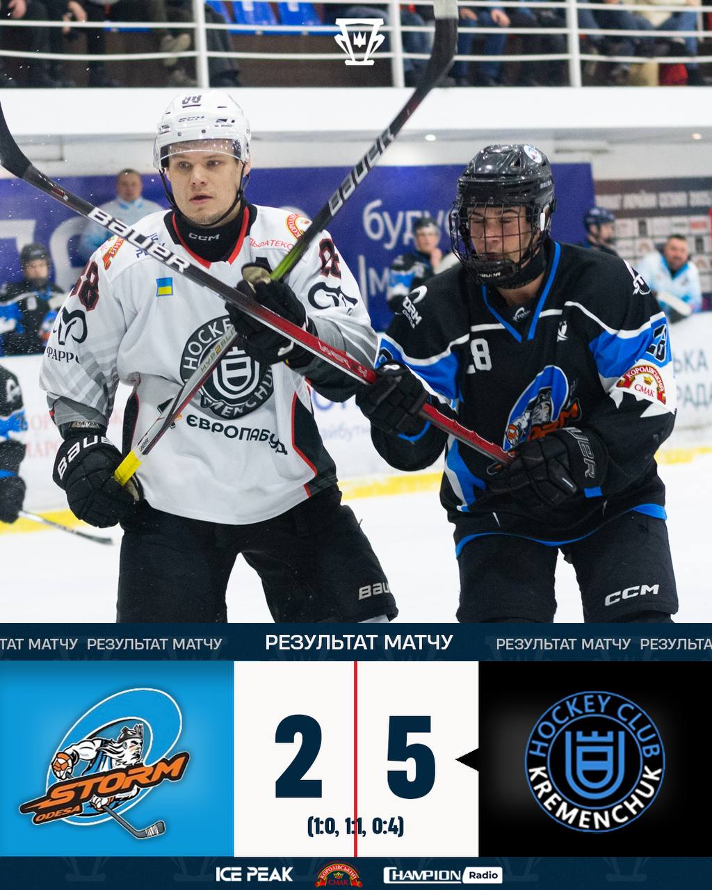30 січня у Кременчуці на льодовій арені «Айсберг» відбувся матч чемпіонату України з хокею, у якому ХК «Кременчук» здобув виїзну перемогу над «Штормом» — 5:2.