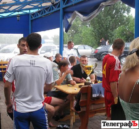 Дождь, начавшийся сразу после церемонии награждения, загнал команды под крышу 'Арарата'. Вот хозяевам прибыль привалила!