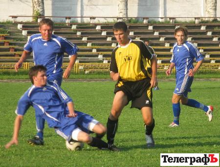 Нельзя не отметить состояние поля. На этот час при такой жаре газон можно сказать в идеальном состоянии. Играть на нем одно удовольствие. Но погодные условия вынуждают арбитра прервать матч и отправть команды на водопой. ФК «Молодежный» продолжает искать счастье у чужих ворот. И вот уже Александр Солнышкин, получив пас со своей половины поля, пробивает по воротам, но вратарь справляется с эти ударом. Александр Дындиков накручивает защитников на подступах к чужой штрафной, и только нога Юрия Векленко становится препятствием для полета мяча в ворота. Хозяева начинают понемногу откровенно грубить и раз за разом то Павлик, то Дындиковы оказываются на газоне. На 31-й минуте возник опасный момент у ворот Александра Гринько, однако Сергей Скребенков не попал в ворота с пределов штрафной. Через две минуты гости снова вынуждают вступать в игру Сидорца. Андрей Акуленко диагональным пасом через всю штрафную находит Антона Дындикова, но его удар в ближний угол вратарь отбивает ногой. За 5 минут до конца первого тайма Гринько спасает свою команду после удара Гуменюка метров с семи. Хозяева подают угловой, гости отбиваются и организовывают результативную атаку. Казалось, Векленко уже отобрал у Александра Дындикова мяч, но нападающий буквально выцарапал мяч у защитника и сразу пробил неотразимо в ближний верхний угол ворот – 0:3.