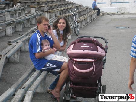Антон Бородин после первого тайма досматривал матч вместе с женой и дочуркой.