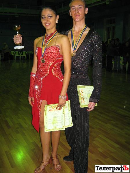 В самой сложной категории ‘рейтинг’ удача улыбнулась танцевальному дуэту Д.Рудь/А.Семененко (‘Юниоры -2’) – 1-е место в европейской программе. А также Кубок Чемпионата в руках дуэта Е.Гулак/Ю.Пахомова (на фото) в европейской программе и 2-е место в латиноамериканской программе, в категории ‘Взрослые’. Тренеры и танцоры благодарят директора педучилища И.В. Гальченко и ДДЮТ Т.В.Кравченко за возможность подготовки и участия в этих соревнованиях танцклуба ‘Сузір’я’.