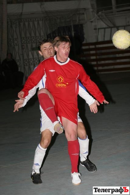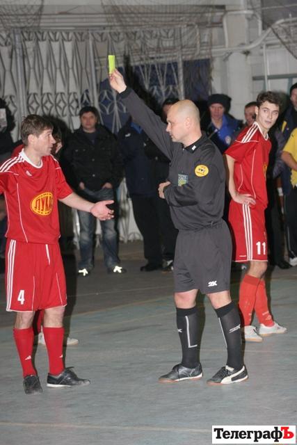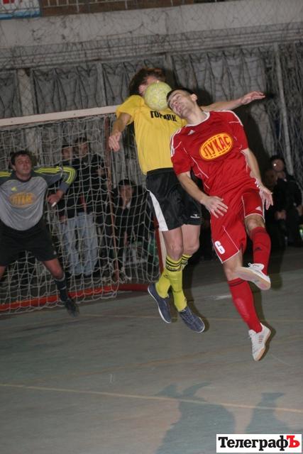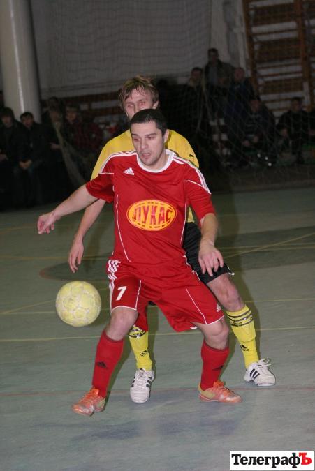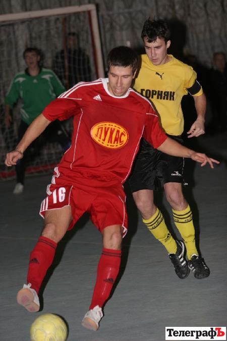 Уже на 20-й секунде игры Александру Петько (так и не залечившего повреждение мизинца) пришлось выручать свою команду после удара Артёма Козлова. Через четыре минуты опасный момент возник и у противоположных ворот. Александр Ларионов, которому Сергей Шаманский доверил место в первой четвёрке, прошёл по правому флангу и пробил мимо Богдана Подорожнего, однако на линии ворот своего голкипера подстраховал защитник. На 6-й минуте только реакция Петько и доля везения не позволяют мячу пересечь линию ворот после удара Руслана Дегтяря. Через три минуты блеснул реакцией и Богдан Подорожний, который в шпагате ногой достал мяч в нижем углу после удара Максима Крупина. Одним словом зрителям скучать не приходилось: борьба, скорость, а главное голевые моменты – всего этого на площадке было в достаточном количестве. С одной стороны молодость и спортивная наглость, подкреплённая определённым мастерством, а с другой стороны опыт и амбиции, как раз то, что нужно для зрелищного матча. Первый гол стал следствием как раз того самого мастерства, которого для уровня города у игроков «Горняка-2» уже вполне достаточно. Сергей Лапа накрутил на углу площадки двоих соперников и отдал зрячий пас на Ваге Саркисяна, конёк которого штрафной «пятачёк». Приняв одним касанием, вторым Ваге пробил низом, резко и точно. Через минуту, приняв длинный ввод мяча от свого вратаря Никита Вовченко имел возможность нанести подряд сразу два удара, но с обеими блестяще справился Петько. Затем Максим Крупин на своём фирменном замахе уложил сразу двоих соперников, но третий всё же успел встать на пути мяча, не позволив форварду «Лукаса» нанести разящий удар. На 17-й минуте тайма «Лукас» нахватался уже 5 фолов, однако, забегая наперёд, скажем, что ни одного 10-ти метрового удара «Горняку-2» пробить так и не довелось. Сравнять счет удалось Андрею Акуленко, нехитрым ударом низом застав врасплох Подорожнего. Тут же вывести «Лукас» вперёд мог Крупин, но на этот раз Подорожный сыграл надежно. За 5 минут до конца тайма обязан был забивать Максим Шаманский, но простил соперника, пробив мимо ворот. А за минуту до перерыва уже Лапа не воспользовался своим шансом, при выходе два в одного, решив пробить самому вместо того, что бы отдать пас на партнёра, который находился в более выгодной позиции.