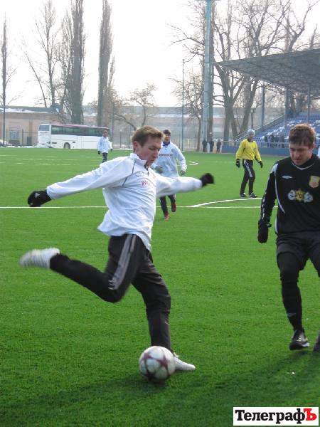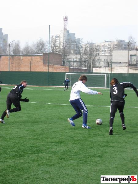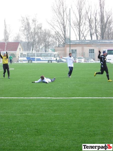 Этот матч активнее начали гости, которые и создали первыми голевой момент у ворот Андрея Олейника. А фраза «голевой момент» могла бы и вовсе смениться на простое слово гол, если бы форвард «Полтавы» не угодил в положение вне игры. Полтавчане разыграли хорошую комбинацию на своём правом фланге, в результате чего кто-то из атакующих игроков этой команды (фамилий не называю, т.к. не знаю этих футболистов, а сами полтавские тренера вежливо отказались назвать состав своей команды, сославшись, что много ребят находятся на просмотре) выскочил на ударную позицию и пробил низом в дальний угол. Но за секунду до этого флажок ассистента арбитра уже был поднят. Но уже буквально через пару минут в ворота «Кремня» влетел чистый мяч. И снова атака с правого фланга, навес и удачное завершение в одно касание Романа Фатия. Вроде бы и наши все успели вовремя оттянуться в свою штрафную, однако помешать Фатию забить оказалось некому. И лишь после пропущенного гола «Кремень» пришёл в себя и взялся уже более конкретно прощупывать оборону «Полтавы». Как всегда активно на своём правом фланге работал Виталий Собко, прострелы которого были весьма опасны. Сергей Степанчук также старался и выкладывался в привычной для него манере и даже мог забить гол в первом тайме, но его удару головой откровенно не хватило силы да и до ворот было несколько далековато. Срявнять счёт удалось капитану «Кремня» в этом матче Андрею Мисяйло. Степанчука сбили на левом фланге и к мячу подошёл Мисяйло. Позиция не для прямого удара, а только лишь для навеса в штрафную. Андрей выполнил хорошую подачу, а борьба игроков в штрафной дезориентировала вратаря гостей и мяч, никого не задев, влетел в дальний угол.