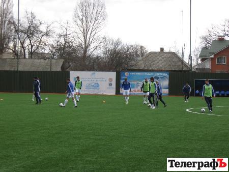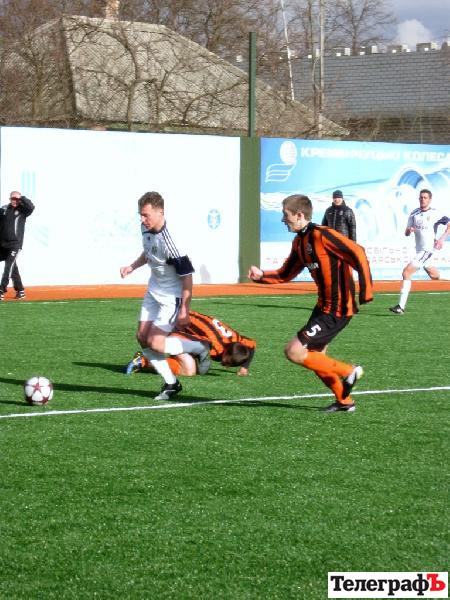Табло стадиона показывало оптимистические +9, но сильный ветер и отсутствие солнца, сводили на нет эту, казалось бы, тёплую по Цельсию цифру. Игру активнее начали гости, вероятно, рассчитывая на быстрый гол. Так, первые опасные моменты возникли именно возле ворот Андрея Олейника. Сеачала Владислав Кравченко прошёл левым флангом и сделал очень неприятный прострел, но Олейник был надежён и оказался первым на мяче. Но уже через несколько минут ошибка нашего голкипера на выходе после подачи углового едва не закончилась голом в ворота «Кремня». Илья Глушицкий выпрыгнул выше всех, а также опередил и Олейника, но пробивая головой не попал в ворота. На это «Кремень» сразу же ответил, причём ответ этот получился очень убедительным. Виталий Собко, который, к слову сказать, хозяйничал на своей бровке всю игру, сделал выверенный прострел на Степанчука и главный бомбардир «Кремня» ударом головой пробил Евгения Гальчука. После гола уже хозяева взяли мяч под свой контроль и перевели игру в спокойное русло, не позволяя сопернику угрожать своим воротам, правда, не особо напрягая и вратаря соперников. Хотя у Собко на 37-й минуте мог состояться выход один на один, если бы полузащитник «Кремня» не залез перед этим в «офф-сайд».