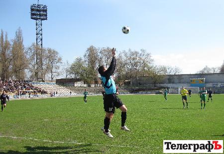 Первый из которых, возник после того, как наши защитники сбили Дмитрия Мартышова. Сам пострадавший исполнил штрафной и Олейник в красивом броске вытащил мяч, летевший под перекладину. Хозяева ответили скоростной атакой левым флангом. Теперь уже защитники «Титана» не церемонятся с нашим игроком и Виталий Собко завершил свой проход в метре от штрафной. Василий Климов пробил над правым верхним углом. Второй звоночек, который, к счастью, не стал роковым предупреждением для нас, прозвучал после того, как нескладный на первый взгляд Евгений Радионов, получив мяч от Алексея Камерцеля, убежал от Игоря Черномора и пробил метров с 15-ти. Олейник еще раз потешил публику эффектным прыжком. Подобный момент мог возникнуть у чужих ворот, но забег Степанчука остановил боковой арбитр, зафиксировавший сомнительный офсайд. Зрители освистали арбитра, которым, кстати, придется еще не раз слышать в свой адрес нелестную критику.