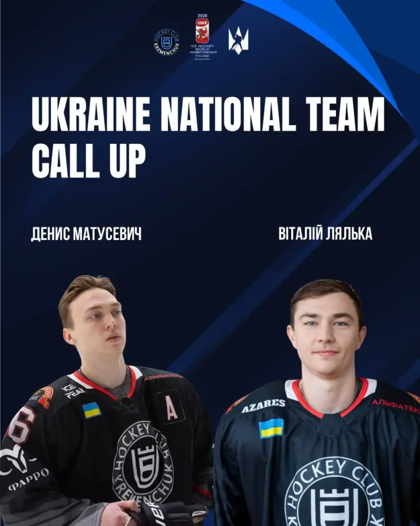 Капітан і асистент ХК «Кременчук» Віталій Лялька та Денис Матусевич увійшли до складу тренувального табору національної збірної України. Про це повідомили в пресслужбі хокейного клубу.