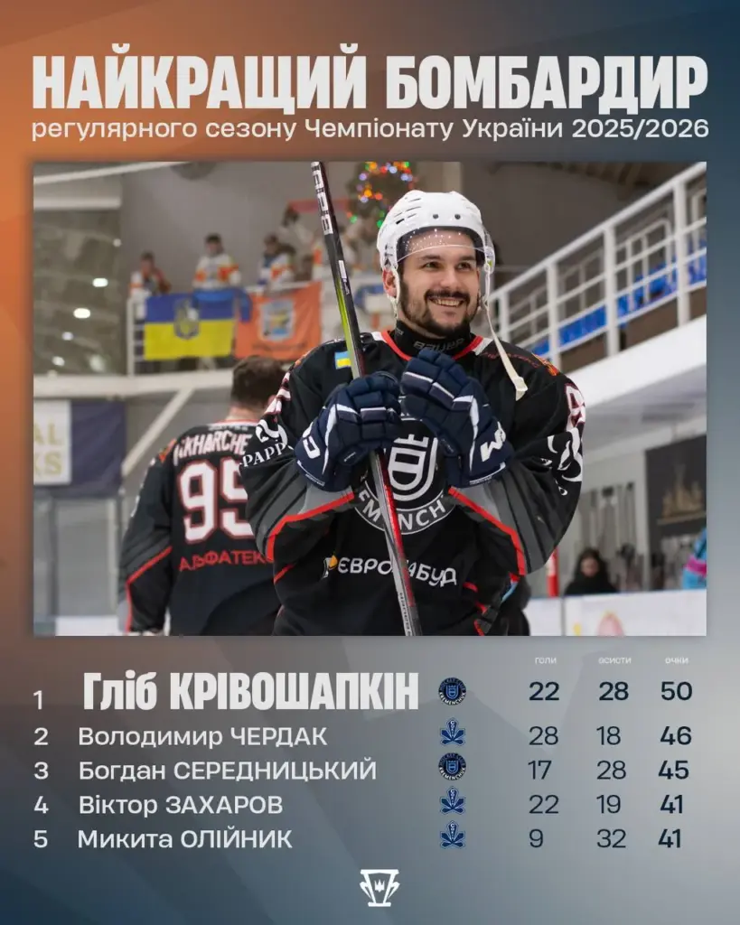Федерація хокею України оприлюднила статистичні підсумки регулярного чемпіонату України сезону 2025/26. Серед найкращих гравців турніру одразу в кількох номінаціях відзначилися хокеїсти «Кременчука».