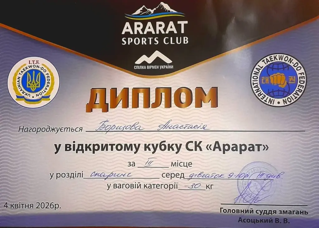 Кременчуцькі спортсмени вибороли призові місця на відкритому кубку «Ararat Open Cup 2026» з таеквон-до ІТФ, що проходив у суботу, 4 квітня, у Бучі. Про це повідомляють педагоги Кременчуцького спортивного ліцею ім. І. Піддубного, де таеквондисти навчаються.