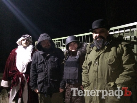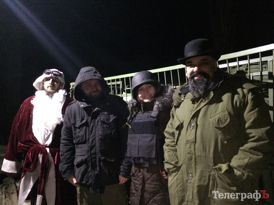 Координатор медицинской службы вместе с товарищами встретил Новый год под аэропортом Донецка. Хоттабыч - в плаще, на переднем плане.