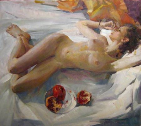 *На фото: картина маслом Олега Станичнова «Ню и гранат»