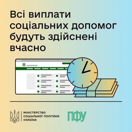 Отримувачі інших державних соціальних виплат можуть бути впевненими, що нарахування будуть здійснені вчасно та відповідно до зазначених постанов уряду